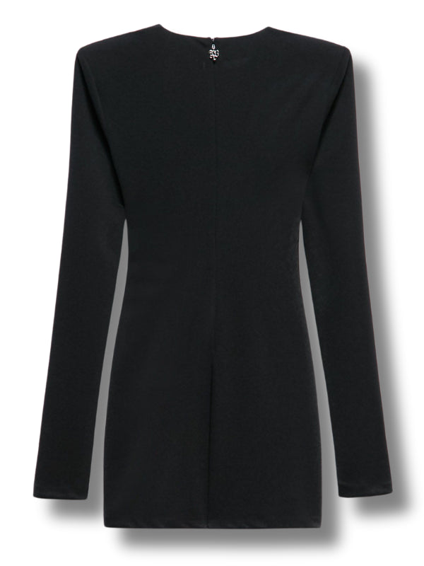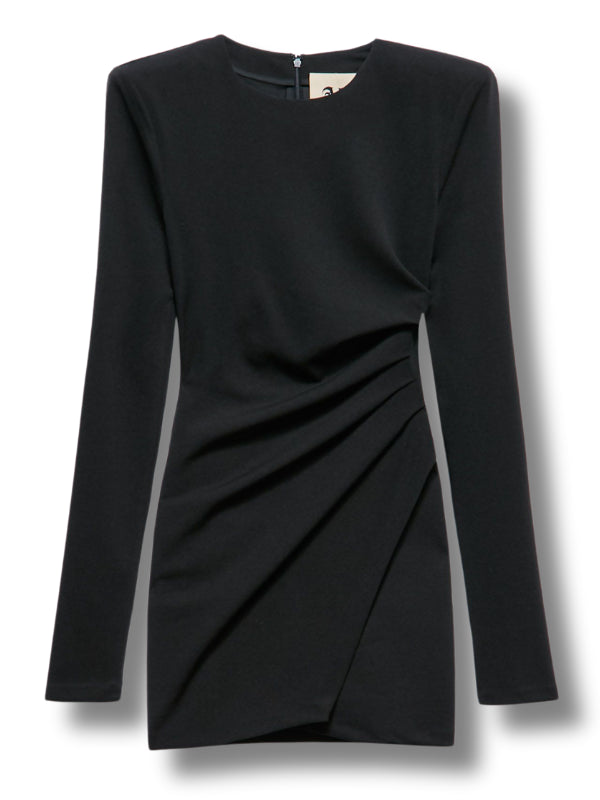 Mini abito Sienna in tessuto stretch, motivo drappeggiato, girocollo, maniche lunghe, chiusura con zip sul retro, fodera interna.