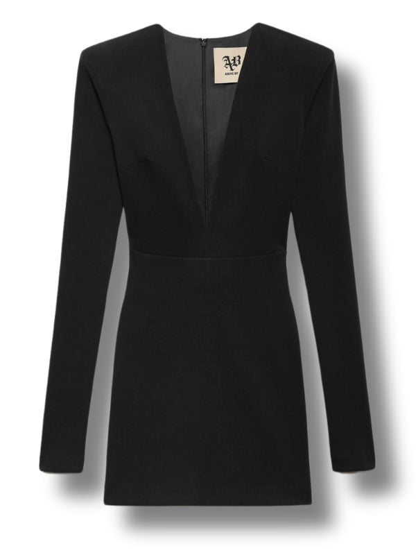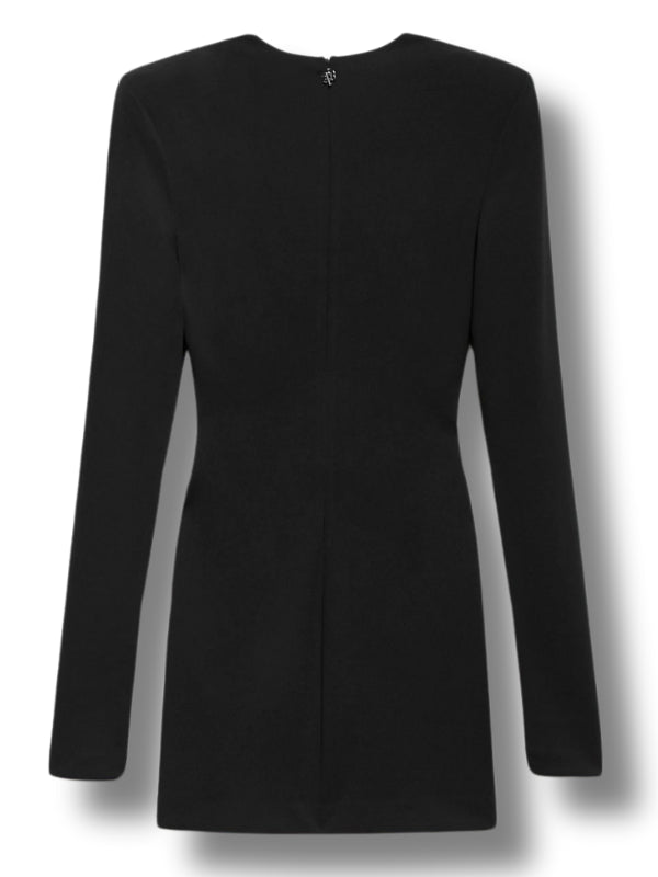 Abito corto Sienna in tessuto stretch nero, scollo a V, maniche lunghe, fodera interna.