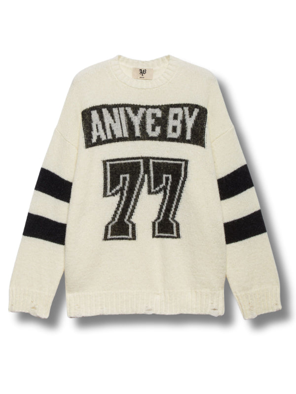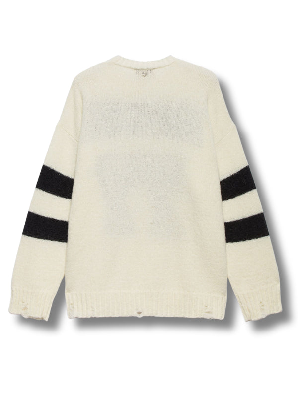 Maglione Bryant in misto alpaca latte e nero, dettagli destroyed, girocollo, maniche lunghe con motivo a righe, bordi a coste.