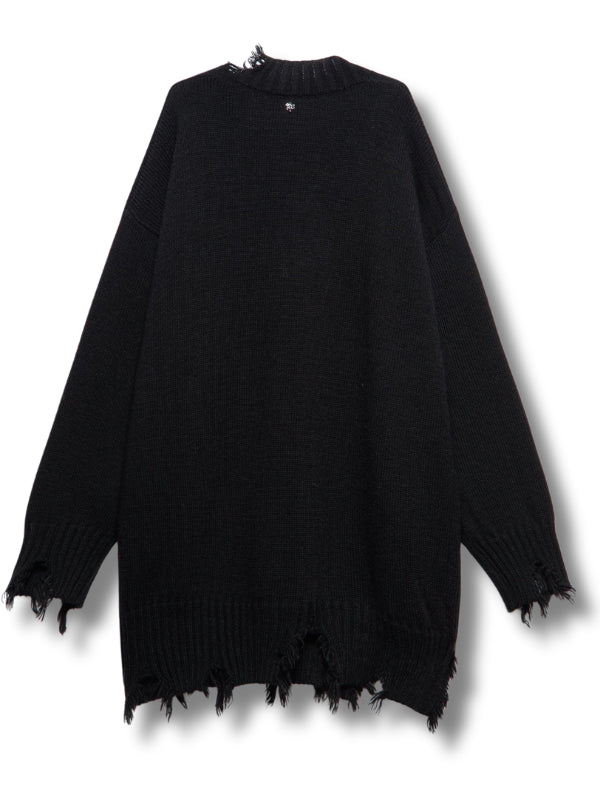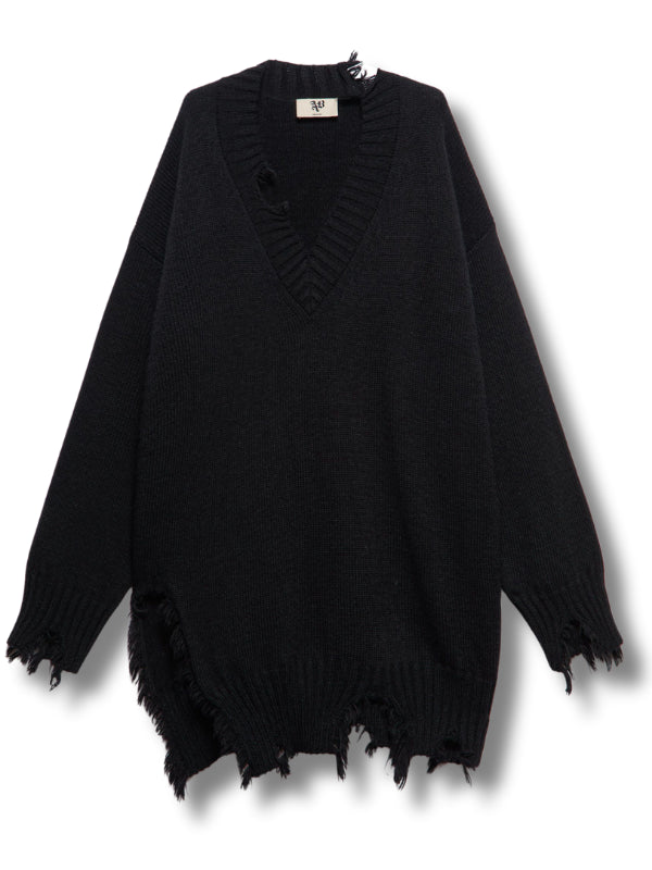 Maglione Taylor in misto lana e alpaca, dettagli destroyed, scollo a V, bordi a coste.