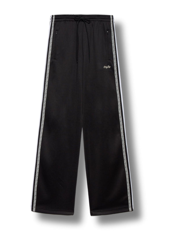 Pantaloni jogging Sienna in tessuto stretch nero, elastico con coulisse in vita, tasche con zip sui lati., bande laterali a contrasto.