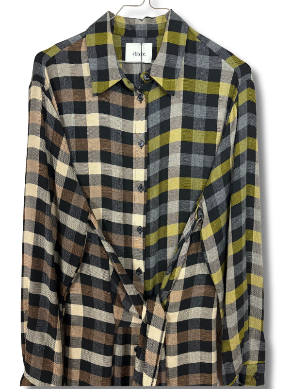 Chemisier in viscosa a quadri patchwork con dettaglio maniche di camicia.