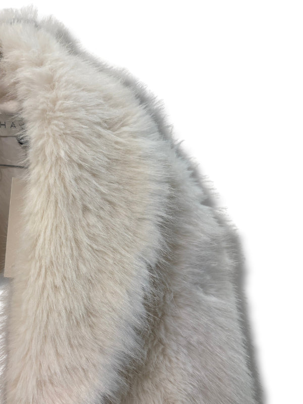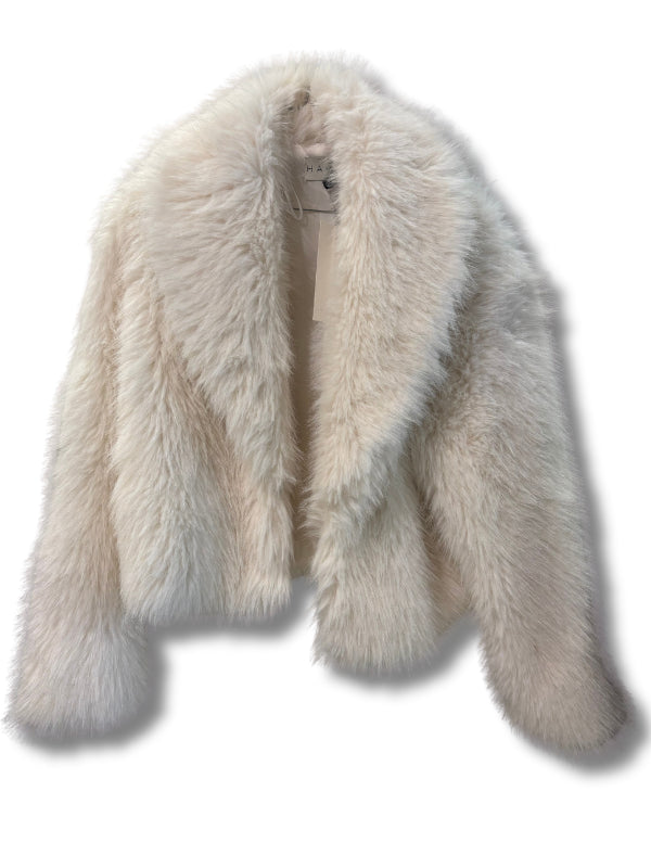 Giubbino in ecopelliccia latte, modello corto con maxi colletto stondato.
