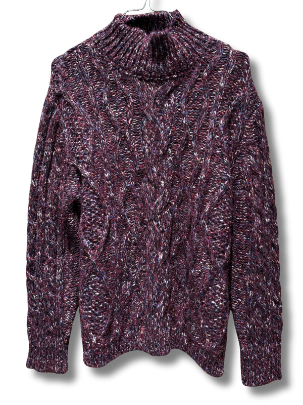 Maglia in misto lana melange bordeaux, modello morbido a collo alto, con trecce.