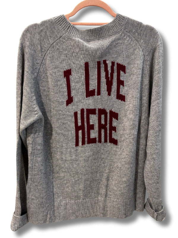 Maglia misto lana grigia con lavorazione jaquard bordeaux, paricollo, vestibilità regular.