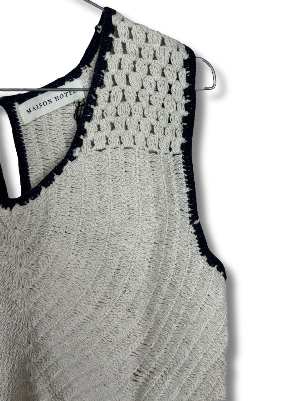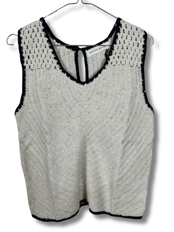 Top in cotone bianco lavorazione crochet con profili blu.