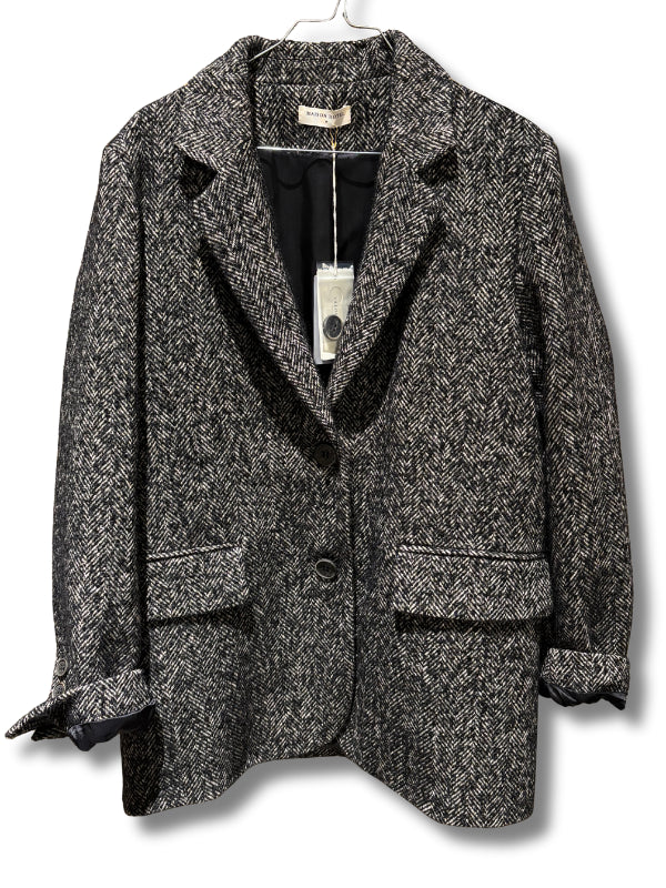 Giacca monopetto in tessuto cappotto spigato, modello dritto.