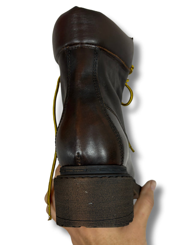Scarponcello in pelle moro, con imbottirura e stringhe a contrasto, suola para in gomma.