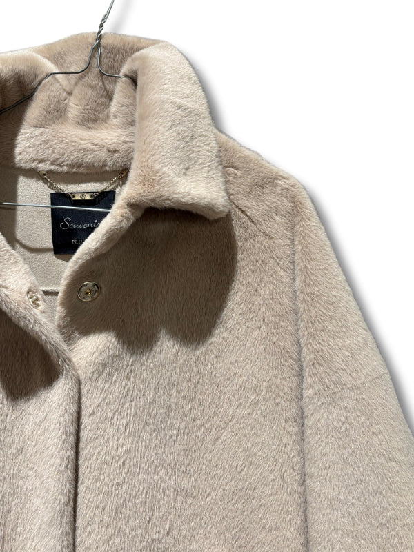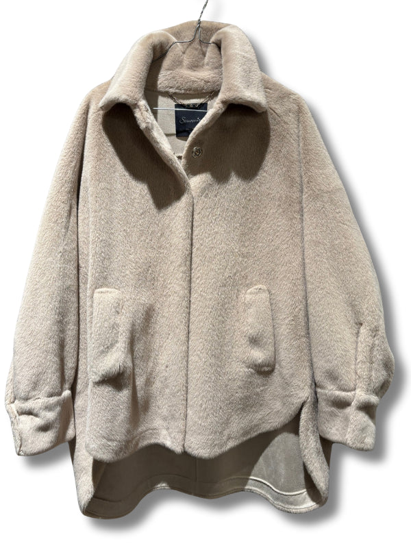 Giubbotto modello overshirt in ecopelliccia sabbia.