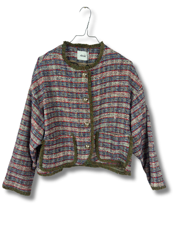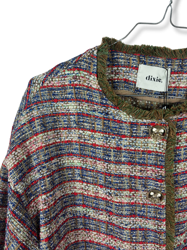 Giacca corta in cotone lavorazione bouclé multicolor, modello girocollo con bottoni.