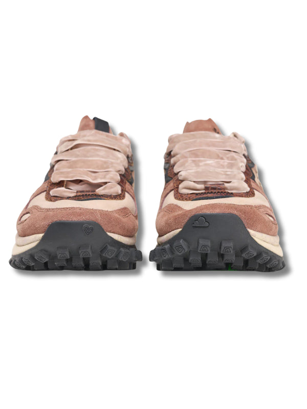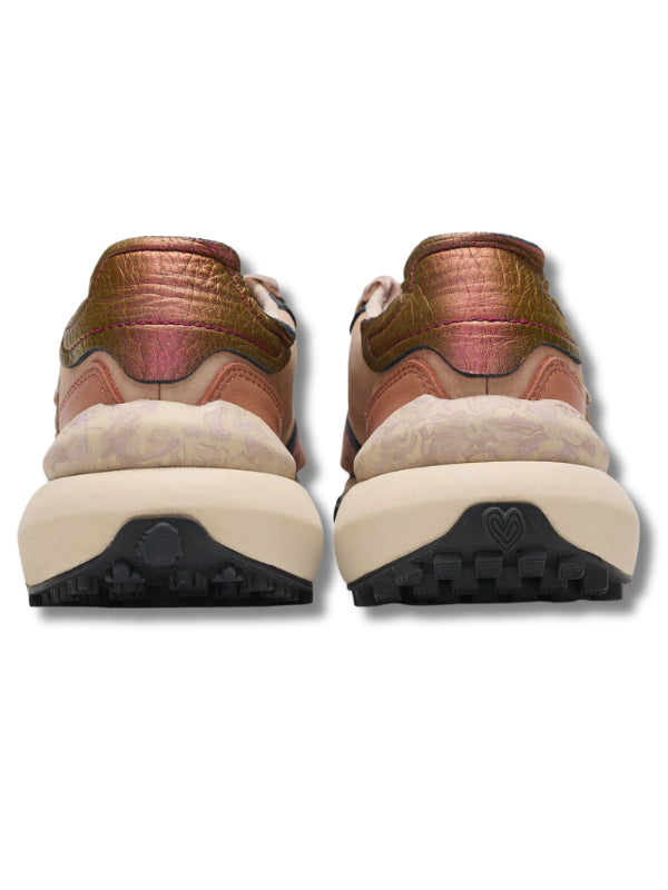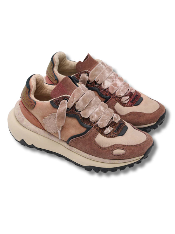 Sneakers platform multicolor, base paher, in pelle, camoscio e tessuto e velluto da produzioni sostenibili, doppio laccio, soletta estraibile, suola estraibile.