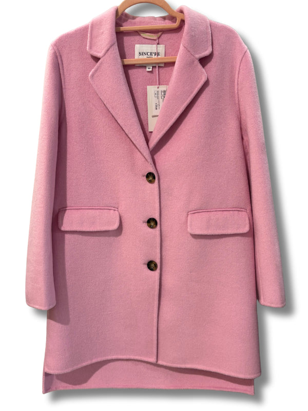 Cappotto midi con spacchi rosa, 50% lana, modello sfoderato, monopetto.