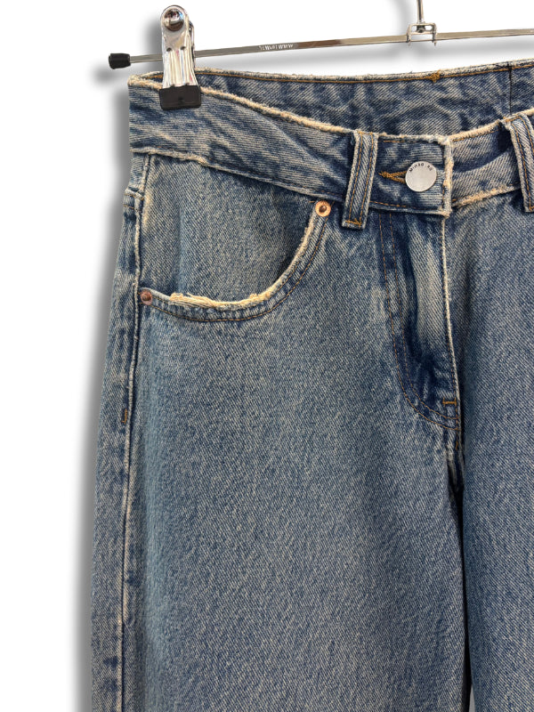 Jeans a gamba ampia lavaggio medio, leggermente flare, tela ferma, vita bassa, cinque tasche.