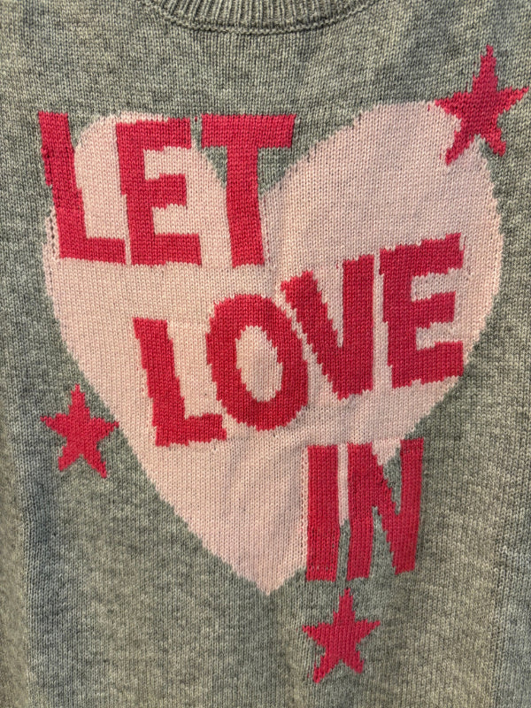 Maglia misto lana grigia con lavorazione jaquard rosa, paricollo, vestibilità regular.