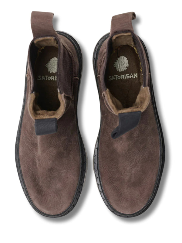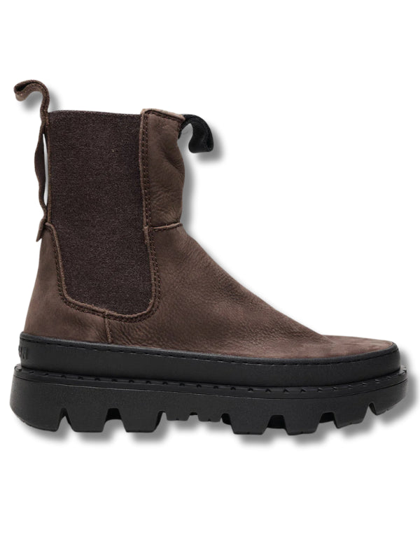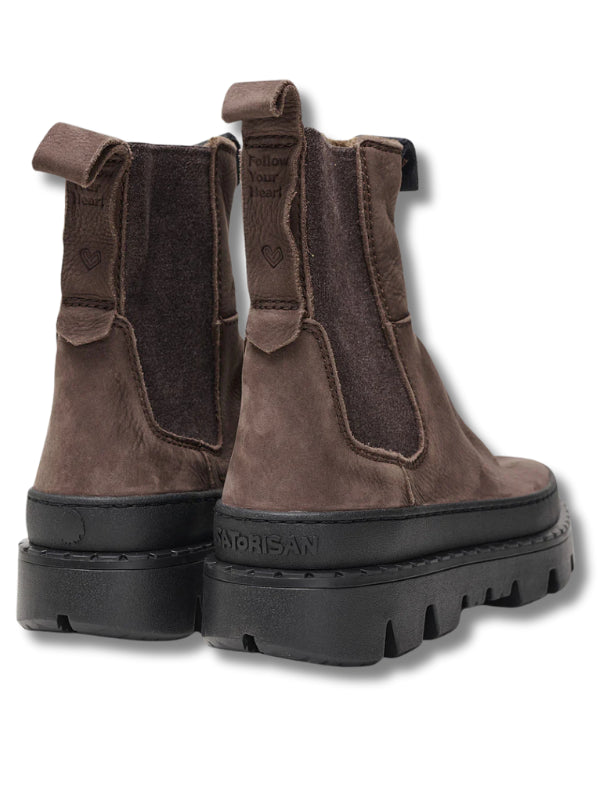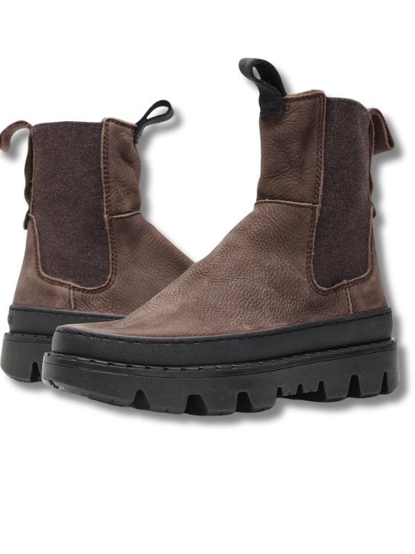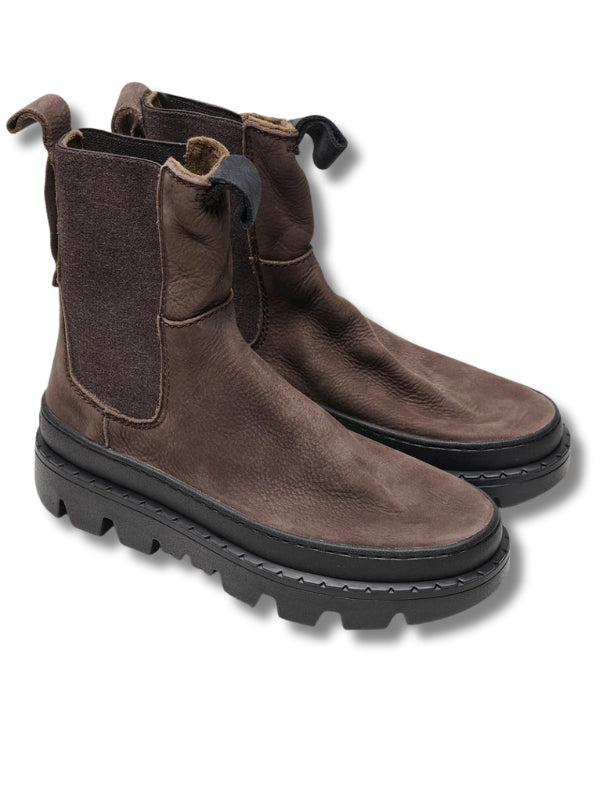 Chunky boot in pelle cioccolato da produzione ecosostenibile, suola in gomma, suoletta anatomica. Disponbile in più colori.
